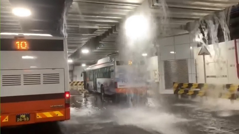 交通局發出新聞稿表示,受上周六暴雨影響,關閘地下巴士站兩側車行道及備用車停泊區天花排水設施接駁位置出現漏水情況,地面輕微積水,但巴士服務運作及乘客上落車均未受影響。