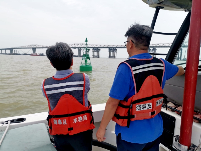 因應澳門大橋即將投入使用,海事局向海上工程業界重點講解了澳門大橋周邊的通航情況,並通知業界局方優化了澳門大橋周邊的航標設置,於澳門水道澳門大橋橋孔周邊增設了M7A、M8A號航標,以及移動了部分航標的位置,也將會在澳門大橋氹仔端附近的海上工程區域周邊,新增臨時警示浮標,以讓海事業界清晰相關情況。