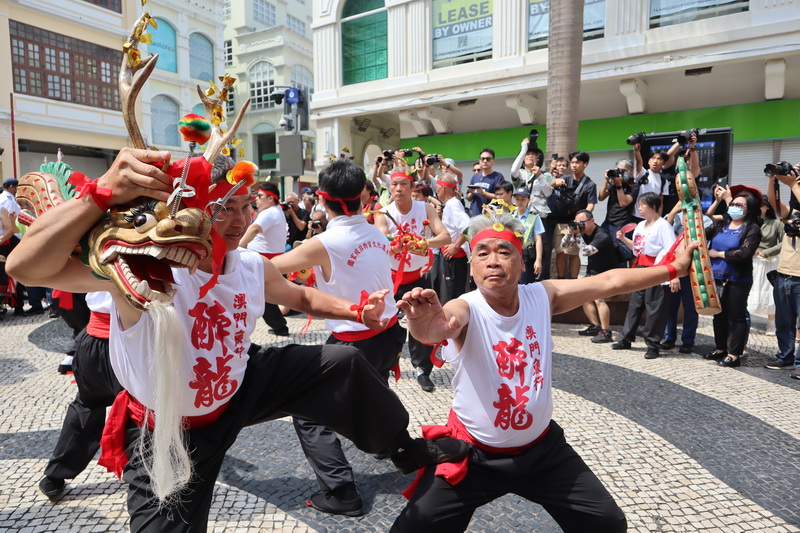 醉龍隊隨著鑼鼓聲與醒獅隊分別出發到澳門半島各區巡遊,包括到沙梨頭街市、臨時提督街市、台山街市和下環街市等多個街市,又到十六浦戶外廣場、葡京酒店正門前地、媽祖廟前地等地點,吸引不少市民旅客和攝影發燒友觀賞和拍攝。