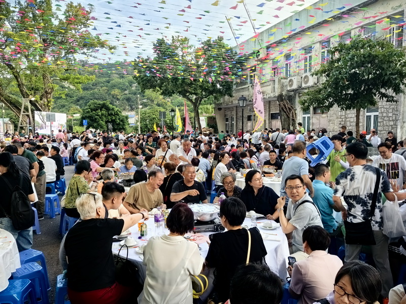 農曆四月初八也是路環年度盛事「譚公誕」的日子,由路環信義福利會主辦、市政署協辦的「光輝路環四月八」系列活動周三在路環市區舉行,早上舉行的會景巡遊有43支隊伍參與,圍繞路環市區巡遊一圈,並向市民派發寓意平安開心的「開心包」。 下午有「繽紛啤Beer嘉年華」,而黃昏有壓軸登場的「信義盆菜聚鄉情」,則在露天筵開了數十席讓居民歡聚一堂,加上現場的歌舞助慶,又別具另一種漁村傳統風味。