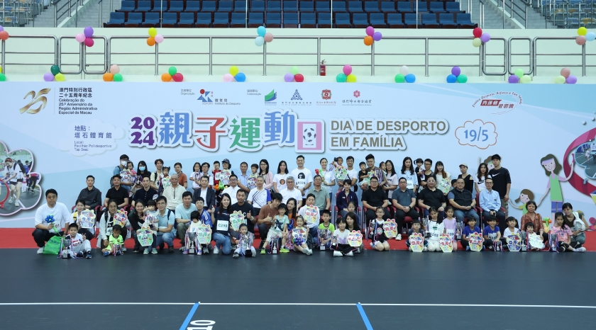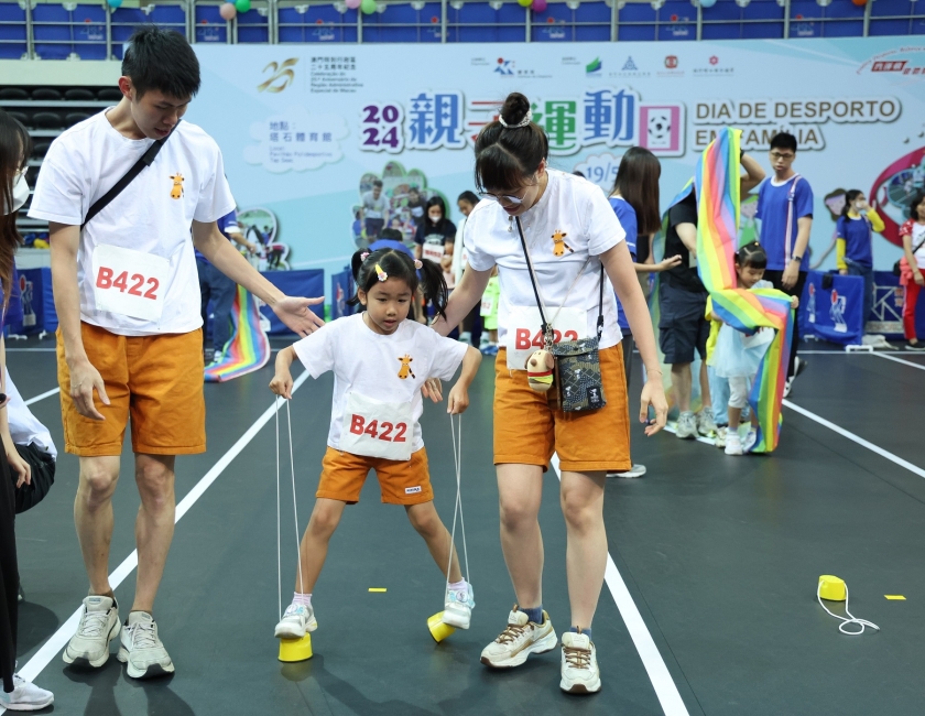 【本報消息】為慶祝澳門特別行政區成立25周年,以及鼓勵家長多陪伴子女參與親子活動,構建良好的親子互動關係並增進親子間的感情,由體育局主辦,教育及青年發展局、街總、工聯及婦聯協辦的「2024親子運動日」於19日在塔石體育館圓滿舉行,受到親子歡迎。活動上,家長與子女互相合作,透過分組進行了多項的康體競技活動,場面溫馨熱鬧。