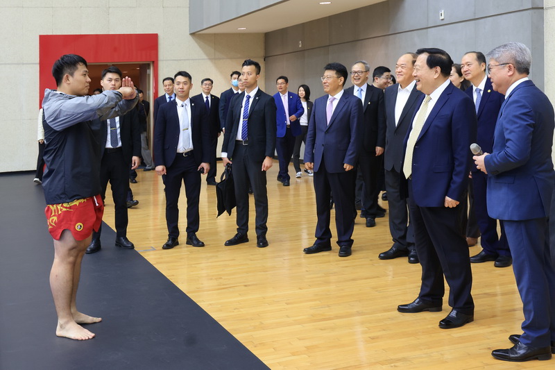 夏寶龍19日結束七天考察調研行程後離澳,是次行程最後一站是考察澳門東亞運動會體育館和毗連的運動員培訓及集訓中心。他參觀了館內的運動場地及會展設施,沿途聽取體育局局長潘永權介紹不同的場館功能、日常使用狀況,以及作為第15屆全國運動會澳門賽區場地的籌備工作。及後又轉往集訓中心參觀各項訓練設施,同時亦了解精英運動員的甄選制度和培訓方式,期間並與在場的教練和運動員交談,關心他們的集訓生活及備戰十五運會等大型賽事的情況。