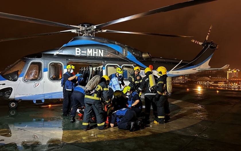 【本報消息】澳門直升機坪於5月20日晚上進行年度全面緊急演習,模擬發生直升機意外,測試和培訓各參與單位和人員應對緊急事件的應變能力。