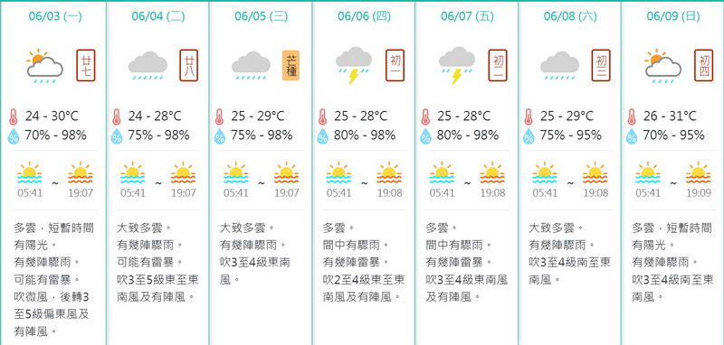 下周一端午節或短暫有陽光