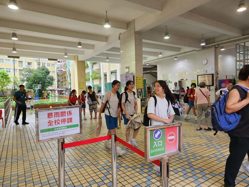 本澳雨勢約於早上11時許開始轉細,但路環仍受大雨影響,因應紅色暴雨警告維持,教青局在早上11時13分按規定公佈全澳中、小、幼及特殊教育下午停課,並要求學校保持校舍開放,安排人員照顧已返抵學校的學生,有照顧需要的學童可繼續留校或送返學校,直至正常放學時間及學生安全離校為止。