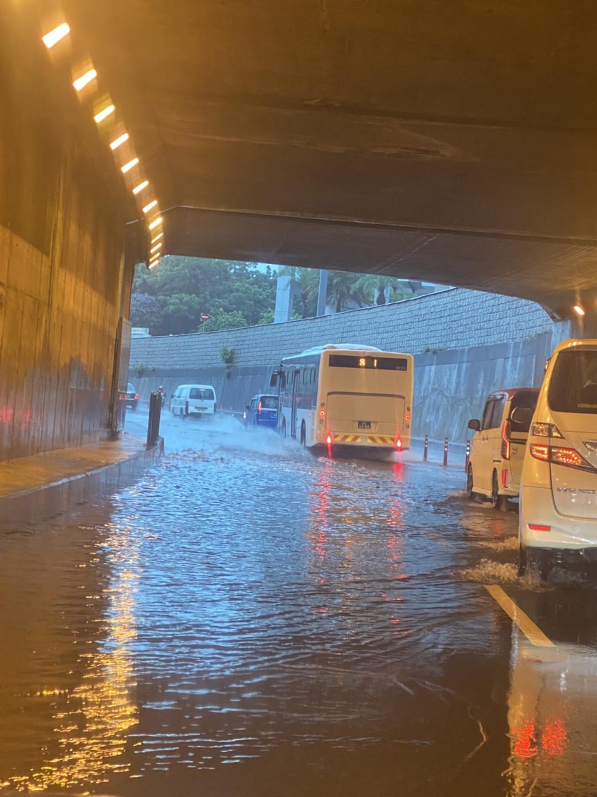 此外,黑沙環慕拉士大馬路近龍園至望廈一帶在紅雨期間也出現水浸情況,暴雨下多區市民反映部份馬路上的渠蓋因水流反湧而升起,包括高士德一帶和黑沙環一帶。亞馬喇圓形地下層行車隧道因水浸而要臨時封閉,關閘地下行車隧道也有積水情況。