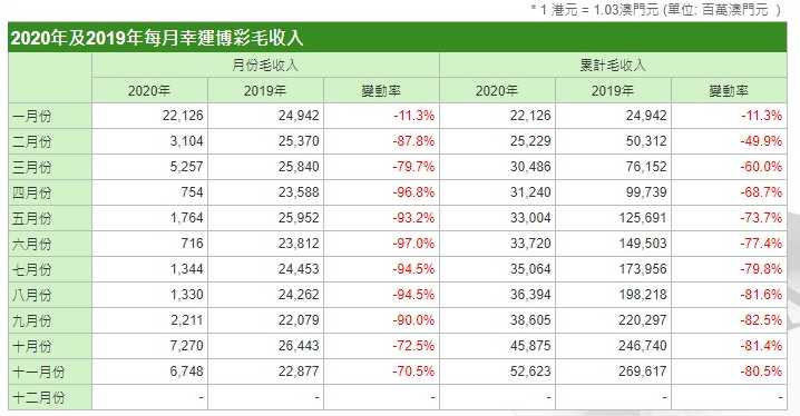 另外,博監局又公佈,今年頭11月的博彩毛收入累計有526.23億元,同比下跌80.5%。而據政府公的2021年度財政預算案,政府預料明年疫情進一步平穩,內地和香港旅客有望有序訪澳,訪澳日均旅客有望較今年翻倍,全年約1,400萬人次,並預料明年日均博彩毛收入可回升至約3.5億元,推算全年為賭收約為1,300億元。
