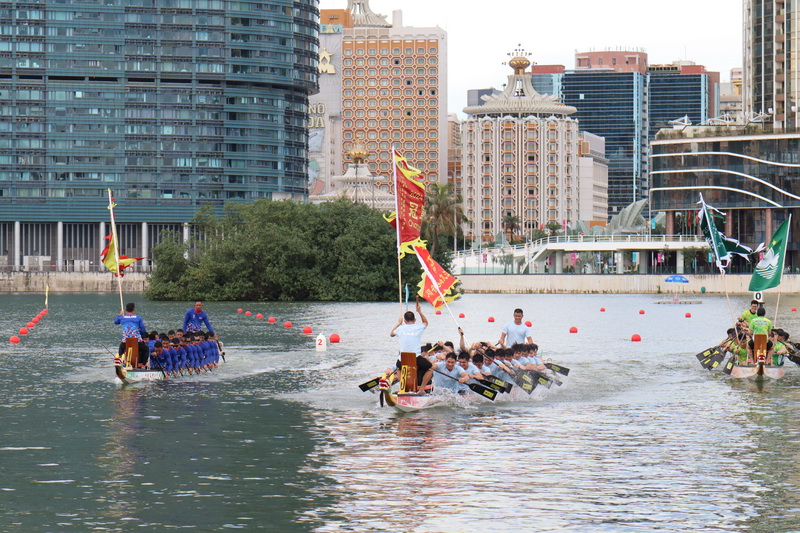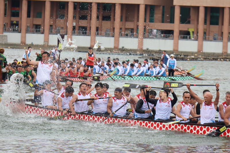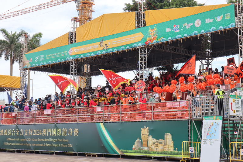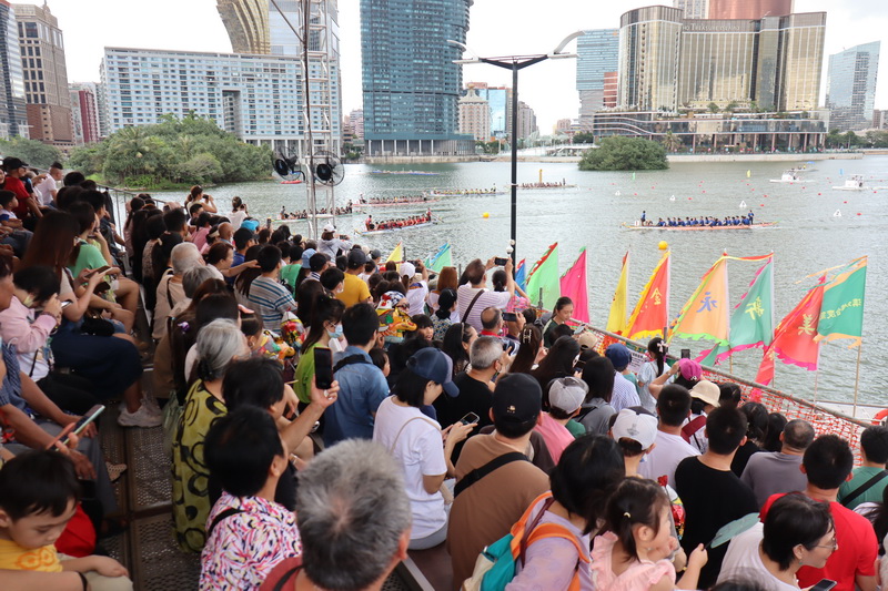 繼上周六和周日的小龍賽和標準龍賽事後,端午節正日在南灣湖水上活動中心上演標準龍公開組、女子組及大學生500米的賽事,正日賽事天色大致多雲,期間雖然一度落起微雨,無阻賽事繼續進行之餘,也未有阻礙居民和旅客到場觀賽,除了六間休閒企業各自的啦啦隊在觀眾席帶來打氣聲外,公眾席也基本座無虛席,公眾需要排隊輪候進場。