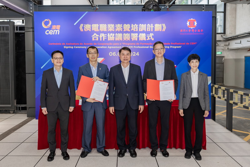 《澳電職業素養培訓計劃》由工聯理事長李從正及澳電執行委員會執行董事張健共同簽訂,並由中聯辦副秘書長兼社工部部長黃華蓋、工聯會長何雪卿及澳電執行委員會主席梁華權共同參與見證。