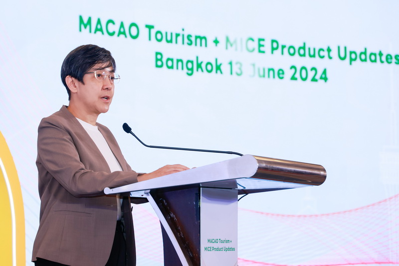 澳門「旅遊+會展」最新產品資訊推介會及洽談會13日在曼谷盛泰瀾酒店會議中心 (Centara Grand & Bangkok Convention Centre at Central World)舉行。旅遊局局長文綺華、泰國旅行社協會前副主席Somchai Chomraka、貿易投資促進局行政管理委員會執行委員李藻森、澳門會展產業聯合商會副會長張敬文、泰國旅行社協會高級顧問Wachira Wichaiwatana、橫琴粵澳深度合作區經濟發展局文旅會展商貿處處長林衍傑和澳門旅遊局駐泰國代表處總經理Uracha Jaktaranon等嘉賓,聯同澳門國際機場代表、澳門六大綜合度假休閒企業代表、澳門和泰國業界等約150人出席活動。