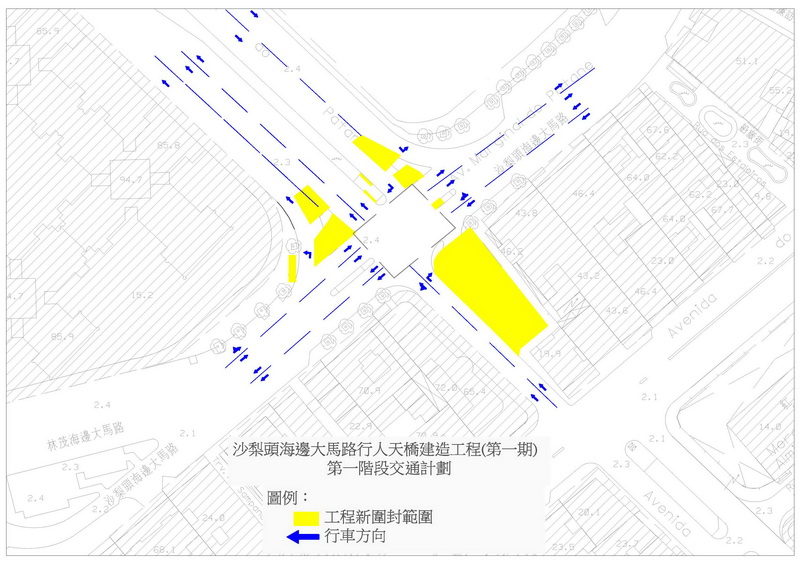 工程期間位於亞洲工業大廈一側的電單車停泊位及垃圾房將暫停使用,工程亦需拆除道路上的花圃以調整行車路並擴寛行人路建造天橋結構,受現場施工環境的限制,沙梨頭海邊大馬路及沙梨頭南街將分階段實施有限度通車,請駕駛者留意現場交通指示。