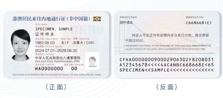 國家移民管理局同日亦公佈港澳居民往來內地通行證(非中國籍)式樣、說明,以及申請須知,非中國籍港澳永久性居民因投資、探親、旅遊、商務、研討、交流等短期入境事由來往內地,首次辦理該通行證時應在香港或澳門由本人向香港中旅集團、澳門中國旅行社遞交申請,須遞交有效的香港、澳門永久性居民身份證,有效普通護照和國籍證明文件等。