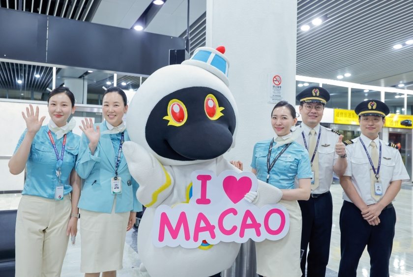 大韓航空首班從首爾來澳航班KE169於7月1日深夜抵達澳門。旅遊局安排澳門旅遊吉祥物「麥麥」到澳門國際機場歡迎該航班旅客以及來澳考察的韓國媒體代表,並致送紀念品,展現澳門熱情好客的一面。