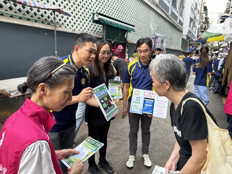 此外,還向居民推廣司警局推出的「反詐程式」,介紹程式的各項功能,呼籲居民多利用當中的「詐騙搜尋器」功能協助分析可疑電話號碼、電郵、銀行帳戶號碼的詐騙風險指數,亦可從程式中瞭解電訊網絡騙案最新手法和預防方法。