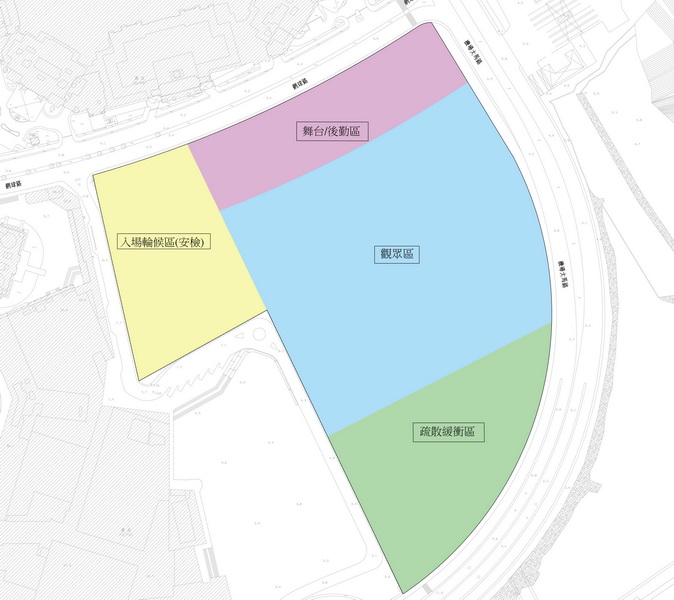 公共建設局網站的資料顯示,澳門戶外表演區建造工程主要建造鋼筋混凝土地台、配套機電系統及排水設施,將於場內設置移動式功能房間,如洗手間、活動團隊辦公室及休息室等,表演區中心位置佈置為觀眾區,西面佈置為入場輪候區(安檢),北面佈置為舞台/後勤區,南面佈置為疏散緩衝區。