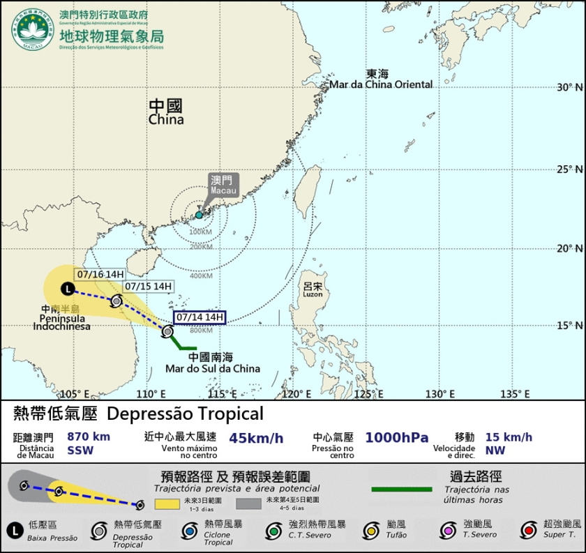 鄰埠香港天文台也預料副熱帶高壓脊周一繼續為中國東南部帶來酷熱的天氣,位於南海中部的熱帶氣旋會大致移向越南中部沿岸。在副熱帶高壓脊及該熱帶氣旋共同影響下,未來一兩日廣東沿岸風勢稍為增強,驟雨逐漸增多。隨著一道廣闊低壓槽在本周中期影響南海北部,區內有驟雨及雷暴。預料該低壓槽會在本周後期稍為減弱,廣東沿岸地區再度酷熱。