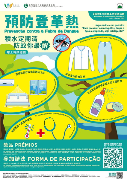【本報消息】為進一步加強居民於外出及外遊時須注意防蚊,預防登革熱工作小組由7月19日至28日期間舉辦第二階段「積水定期清 防蚊你最醒」線上有獎遊戲,期望透過遊戲方式,推動居民做好戶外時的各項防蚊措施。