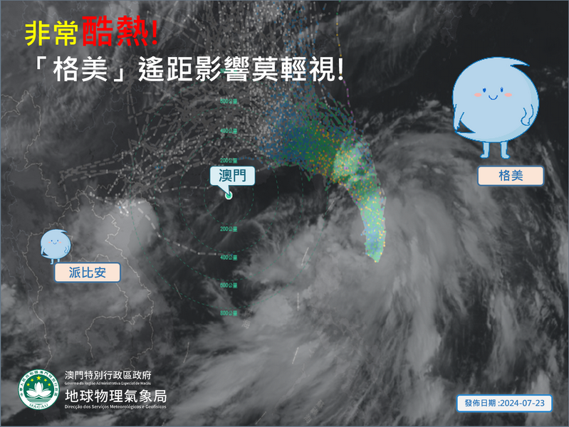 氣象局強調,雖然「格美」直接吹襲廣東沿岸的機會相當低,但受其外圍下沉氣流影響,華南沿岸未來三天(7月24至 26日)將出現非常酷熱的天氣,預料最高氣溫普遍升到攝氏 35至 36或以上,呼籲公眾在戶外工作或活動時應避開高溫時段,並多補充水分,提防中暑。