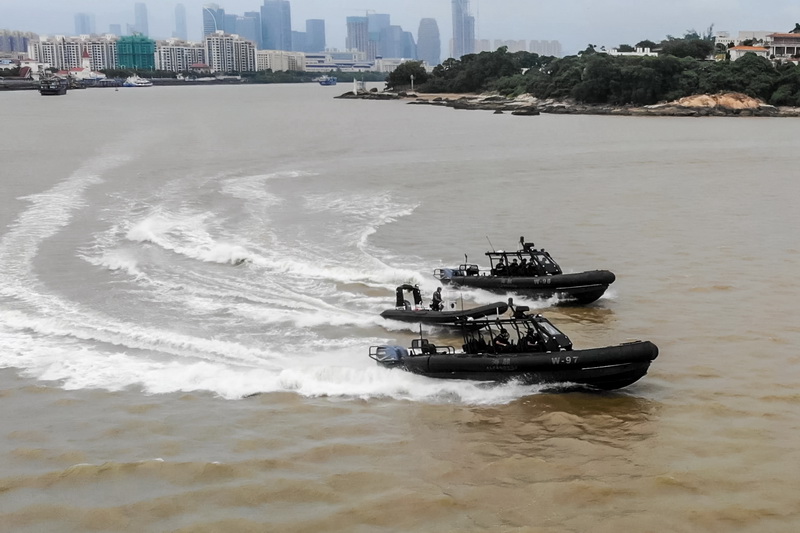 與此同時,澳門海關透過治安警察局提供的「天眼」資訊及無人機偵查,成功在路環石灘追截到兩名在逃的恐怖份子,及後海關巡邏快艇亦在附近海域發現一首可疑快艇,經與特勤隊快艇夾擊攔截後,成功將駕駛快艇的第七名恐怖分子圍捕歸案。