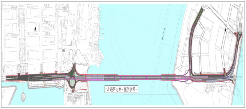 在平衡交通功能、景觀協調和工程實施等眾多要素後,特區政府作出興建行車天橋的決定。於早前公佈的東區-2分區詳細規劃中已指出有關通道採用天橋方案。未來在方案設計及工程建造階段,特區政府各相關部門將持續溝通協作,務求令項目符合社會最大公共利益。
