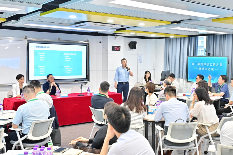 三方有關部門自2022 年起聯合舉辦澳珠琴公務人員交流研討班。本年的第三期交流研討班,是按照澳門特區《2024年財政年度施政報告》中提到的「高水平推動澳琴一體化建設;支持和鼓勵澳門居民在深合區就業創業和生活」的精神,以「跨境政務服務的全面化、便利化,提升橫琴粵澳的服務質素」為主題,推動三方學員共同研討,並就存在的問題尋求解決方案及提出建議方案。