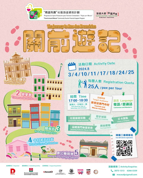 【本報消息】旅遊局持續透過資助計劃,鼓勵澳門社團舉辦多元化旅遊活動或項目,帶動社區經濟。受資助社團於八月份分別推出「古街講古.深度遊」、「關前遊記」、「中式廟宇遊歷之旅—澳門線」及「【嚐非遺.遊世遺】傳統美食製作體驗營」等社區及美食活動,與居民和旅客在夏日走入世遺探索澳門各區,體驗「旅遊+」樂趣,共度繽紛的夏日時光。