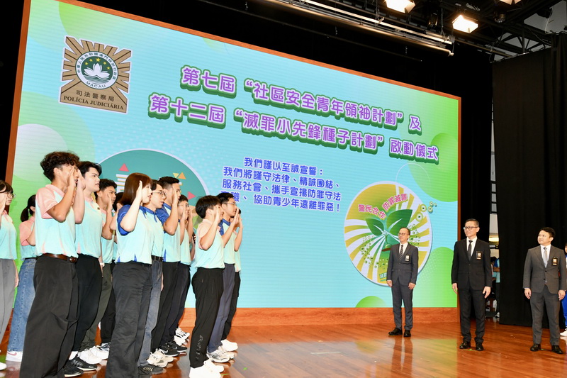 【本報消息】為配合澳門特區政府青年政策,增強青少年的國家觀念、社會責任感和法治意識,司法警察局舉辦第六屆「社區安全青年領袖計劃」及第11屆「滅罪小先鋒種子計劃」結業禮暨新一屆計劃啓動禮。司警局局長薛仲明勉勵學員把握機會,學好本領,學有所成後,為維護國家和澳門安全作出更有力的承擔。