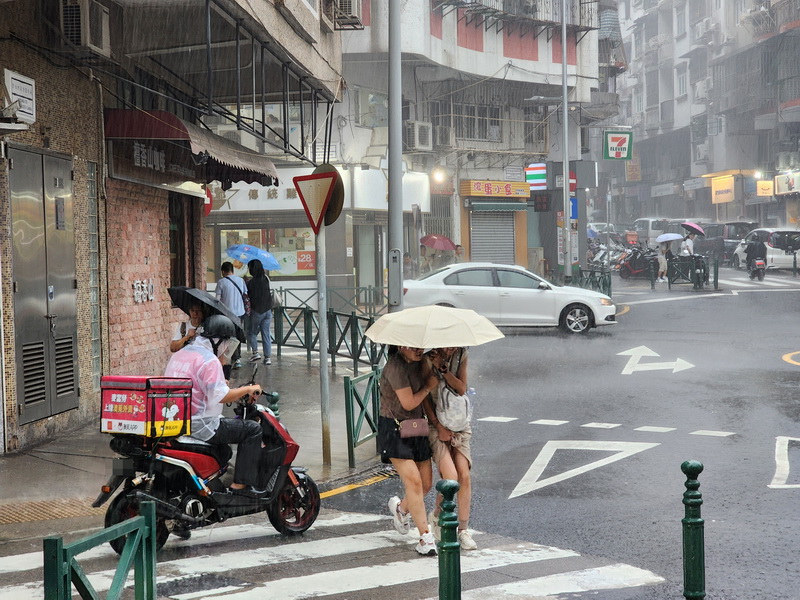 隨著本澳周初轉受西南氣流影響,本澳的高溫天氣開始緩和,但雲量及驟雨亦明顯增加,周二凌晨時份和下午時段本澳先後受到雷雨區影響,當局除發出雷暴警告外,並兩度發出黃色暴雨警告信號,其中中午時份在本澳西側出現的雷雨區於打工仔放午飯時段逐漸影響本澳,讓外出覓食的市民頗為狼狽。截至傍晚,全澳累計雨量最多的是大炮台山氣象站,達51.4毫米,海事博物館和九澳也分別錄得48毫米和43.2毫米。