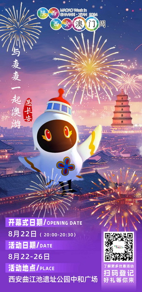 「陝西.西安澳門周」大型路展將於8月22至26日一連五天在西安曲江池遺址公園中和廣場舉行,推廣澳門「旅遊+」元素。多個展區分別介紹澳門概況、美食、節慶盛事、澳門大賽車博物館、演藝活動及體育盛事等,同時帶來文創、「澳門製造」、「澳門品牌」及葡語國家產品,並推廣澳門「特色店」。此外,介紹橫琴粵澳深度合作區的文旅資源,推廣「團進團出」旅遊模式,促進澳琴一程多站旅遊。本澳六家綜合度假休閒企業將介紹其服務及產品,多家內地線上旅行社亦將在現場銷售旅遊產品。