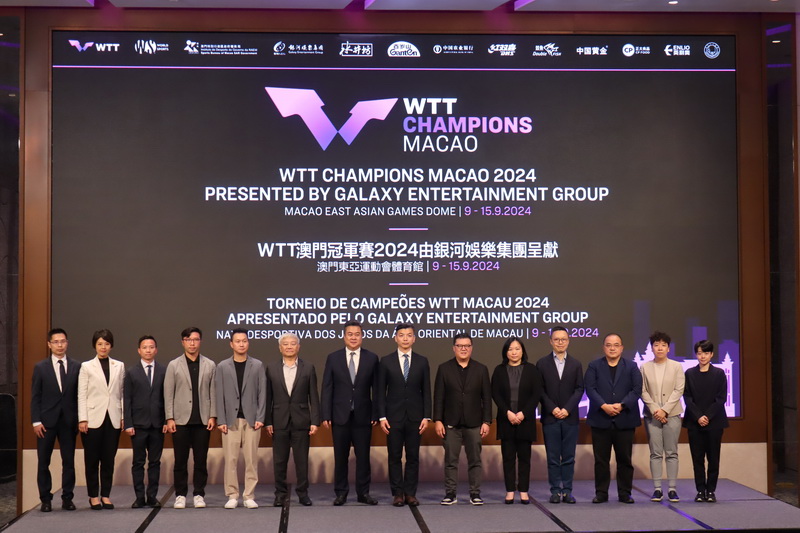 「WTT澳門冠軍賽2024由銀河娛樂集團呈獻」由政府體育局、WTT世界乒乓球職業大聯盟及銀河娛樂集團主辦、澳門乒乓總會協辦,賽事今年由塔石體育館移師至澳門東亞運動會體育館舉行,每場座位增至約4,700個。主辦單位周三下午在銀河國際會議中心舉行新聞發佈會,公佈賽事詳情及票務安排。