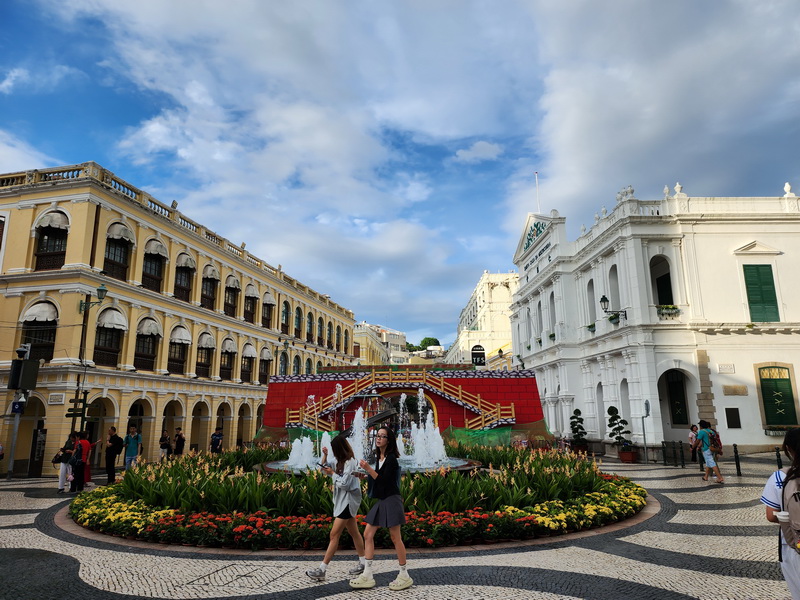 雖然「摩羯」逐漸移近本澳,周四市區風力也略有增加,但日間藍天不時在雲層間露面,令本澳最高氣溫一度上升至攝氏約33度至34度,紫外線亦頗為厲害,令人不禁疑惑是否即將打風;但下午三時許本澳開始受到「摩羯」外圍雨帶影響,間中出現強烈陣雨,但驟雨過後又再於雲隙間見到藍天,令本澳午間天氣晴雨相間。
