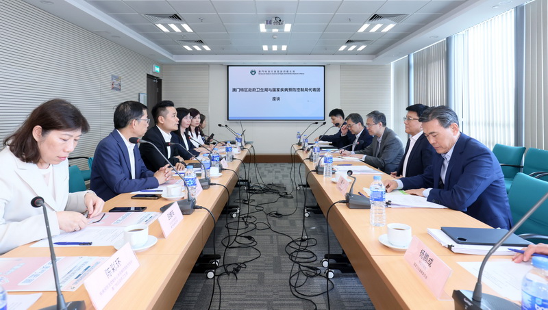 【本報消息】國家衛生健康委副主任、國家疾病預防控制局局長王賀勝率領一行六人的代表團日前來澳考察,與衛生局局長羅奕龍、副局長鄭成業、疾病預防及控制中心主任梁亦好及公共衛生化驗所主任呂綺玲等舉行了座談會,雙方就傳染病防控、公共衛生領域合作等方面作深入交流。