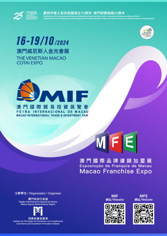 【本報消息】「第29屆澳門國際貿易投資展覽會」(第29屆MIF)與「澳門國際品牌連鎖加盟展2024」(2024MFE),將首次調整在周三至周六(10月16至19日)假澳門威尼斯人金光會展同期同場舉行,提升展會賦能加大企業對接。