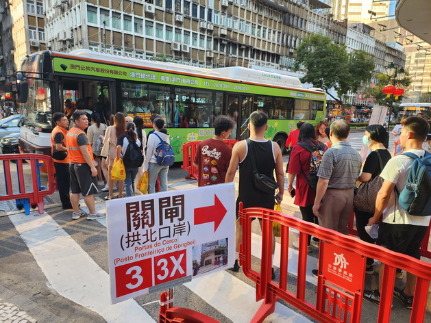 由中區前往關閘和港珠澳大橋的巴士方面,周五下午約五時位於羅保博士街設置的3和3X臨時等候區間中有數十名乘客排隊,但只需等候數分鐘便有巴士到站,每次都能接載所有候車乘客;亞馬喇前地前往港珠澳大橋的101X巴士方面,到場等候旅客人數不算太多,而下午時段港珠澳大橋離境旅客人數亦不算多。