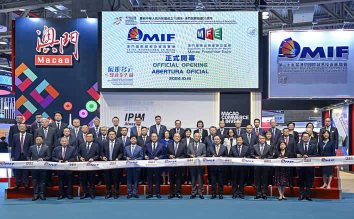 【本報消息】「第29屆澳門國際貿易投資展覽會」(第29屆MIF)聯動「澳門國際品牌連鎖加盟展2024」(2024MFE)已於本周三正式拉開帷幕,並由行政長官賀一誠、中聯辦主任鄭新聰、駐特派員劉顯法等主持開幕儀式。