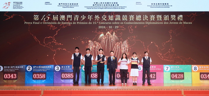 【本報消息】由特區政府與外交部駐澳特派員公署主辦、教育及青年發展局承辦的第15屆澳門青少年外交知識競賽總決賽暨頒獎禮於日前舉行。