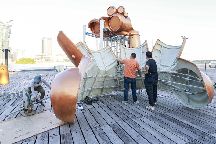 她介紹,「親親大翅鯨」是南灣區旗艦裝置,鯨魚頭及魚尾部份各約七米高、三米闊,整座裝置的重量約800公斤。參觀者欲知誰是機甲海洋保衛隊的守護對象,就要觀看「機甲海洋守護隊」八爪魚頭上播放的片段了。白帳篷的「醉夢星河」將帶領大家走進如宇宙、如深海的星空之境,還有海豚及鯨魚的聲音和呼吸聲營造出海洋的氛圍。團隊的作品融合藝術、科技和動漫元素,同時傳達環保及可持續發展的理念,期望為大家帶來一種天人合一、人與自然萬物共存共生的獨特感受。