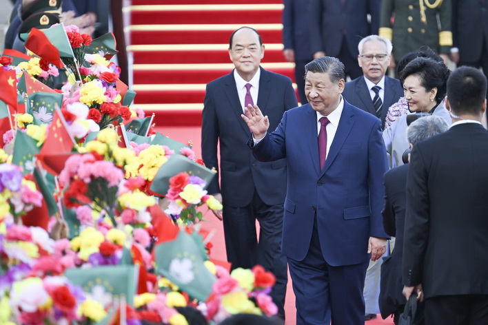 習近平又形容澳門是祖國的掌上明珠,他一直惦念著這裡的發展和全體居民的福祉。最後他表示接下來幾天自己會走一走、看一看,與各界朋友廣泛深入交流,共商澳門發展大計。