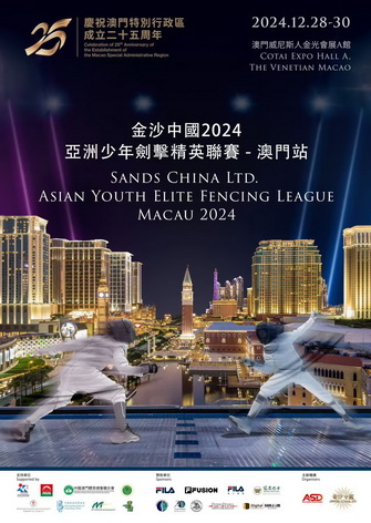 【本報消息】金沙中國與亞洲體育發展將於12月28至30日在威尼斯人金光會展A館合辦「金沙中國2024亞洲少年劍擊精英聯賽—澳門站」,一連三日邀請世界各地的精英小劍手來澳參賽,大展身手,角逐各個組別的殊榮。