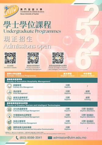 【本報消息】澳門旅遊大學一直致力培育旅遊及服務行業管理人才, 2025/2026學年學士學位課程現正接受四校聯考考生報名,由即日起至1月16日止。