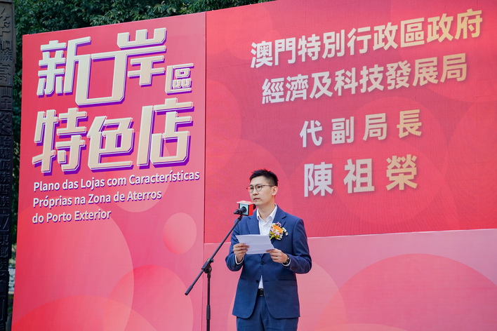 經科局代副局長陳祖榮致辭時表示,今年經科局繼續與地區商會合作,將「特色店計劃」擴展至新口岸區。隨著今次的擴展,特色店已基本覆蓋全澳各區,新口岸區擁有著名的觀光景點和精彩的玩樂選擇,並蘊含豐富多元的美食文化。期望透過「特色店計劃」吸引居民與旅客深入新口岸區探店尋味,進一步帶動人流及刺激消費。