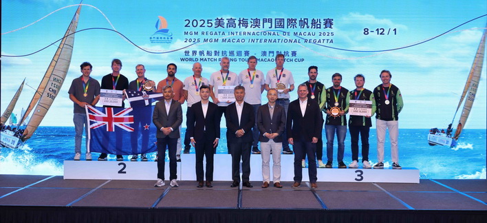 【本報消息】「2025美高梅澳門國際帆船賽」已於1月12日上演壓軸賽事,經一輪競逐後,「世界帆船對抗巡迴賽—澳門對抗賽」總冠軍由英國的伊恩.威廉姆斯(Ian Williams)帶領的船隊奪得。「蓮花盃帆船賽」(IRC組)總冠軍由土耳其Ravenol Sailing Team奪得,而「粵港澳大灣區盃帆船賽」(IRC組)總冠軍則由中國香港的CAPITANO奪得。