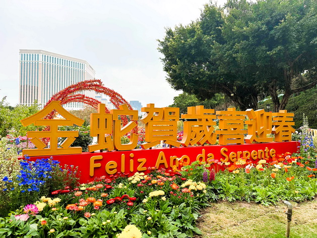 【本報消息】農曆新年即將來臨,市政署以「金蛇賀歲喜迎春」為主題,於全澳各區佈置賀歲燈飾及於龍環葡韻舉行慶新春主題花展,讓市民及遊客感受濃厚的節日氣氛,共度佳節。