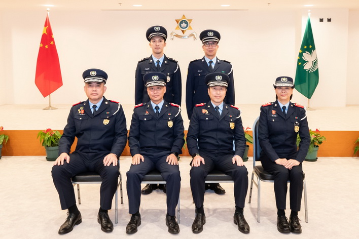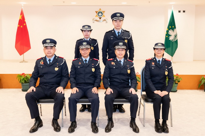 【本報消息】治安警察局舉行了警務總長、副警務總長、警司及高級警長晉升儀式。儀式由局長吳錦華主持,副局長黃偉鴻、梁慶康、伍素萍及各部門主管亦出席儀式,為晉升同僚致賀。