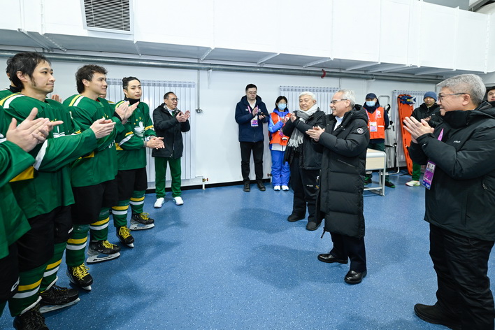 岑浩輝抵達哈爾濱後立即前往哈爾濱冰球館,與參與亞冬會的中國澳門體育代表團見面。中國澳門體育暨奧林匹克委員會主席陳澤武及中國澳門體育代表團團長潘永權介紹了運動員的備戰情況及參與賽事的整體表現。岑浩輝勉勵運動員全力以赴,發揮實力,同時要享受賽事,並與各地運動員加強交流,藉此宣傳和推廣澳門。