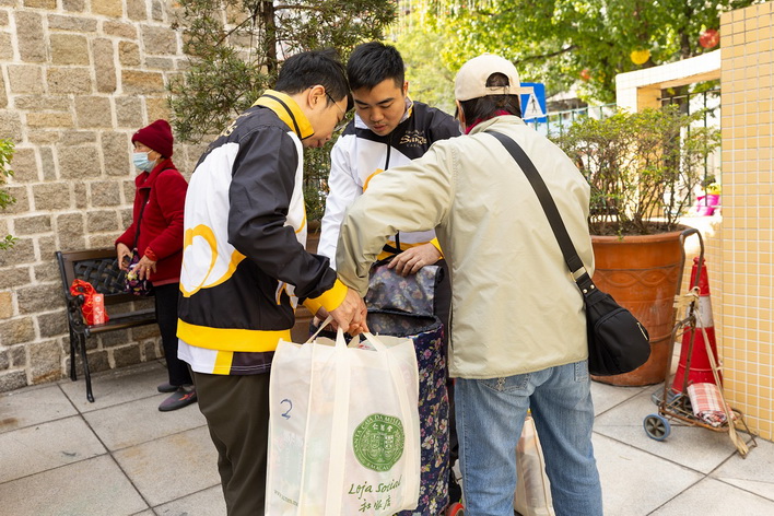 賀年食物籃內盛有米、麵、餅乾、罐裝食物、食油、牙膏及沐浴露等日常用品。金沙中國亦向受惠家庭送上購自澳門扶康會的賀年福袋,共享新春喜悅。
