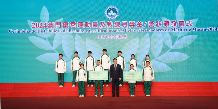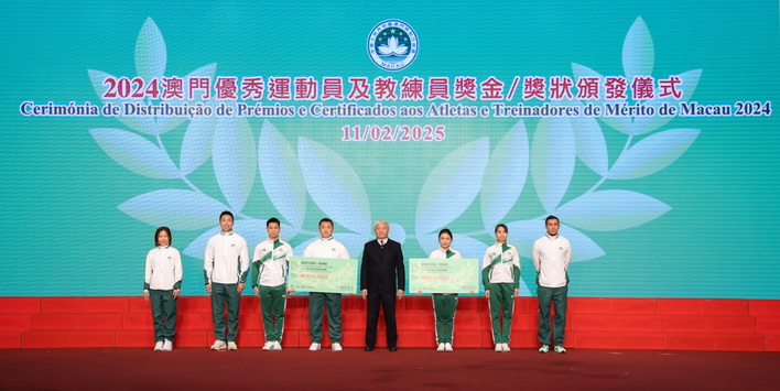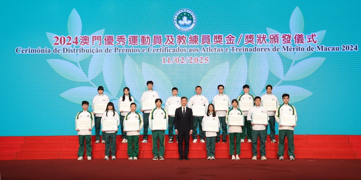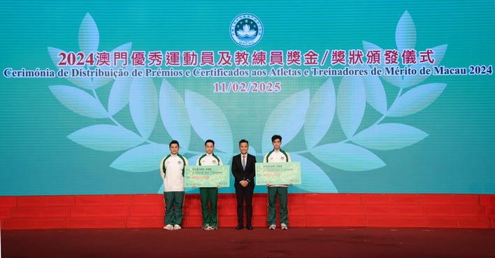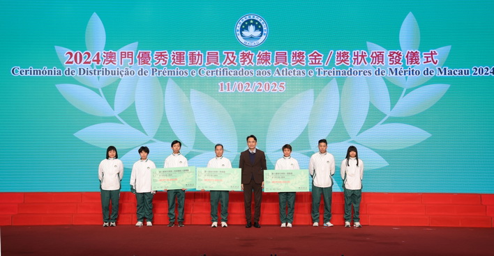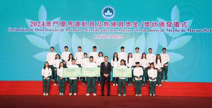 【本報消息】為表彰在2024年度參加體育比賽中獲得優秀成績的運動員、教練員及技術輔助人員,「2024澳門優秀運動員及教練員獎金/獎狀頒發儀式」於11日晚上舉行,社會文化司司長柯嵐等出席了頒發儀式,並祝賀獲獎的隊伍。