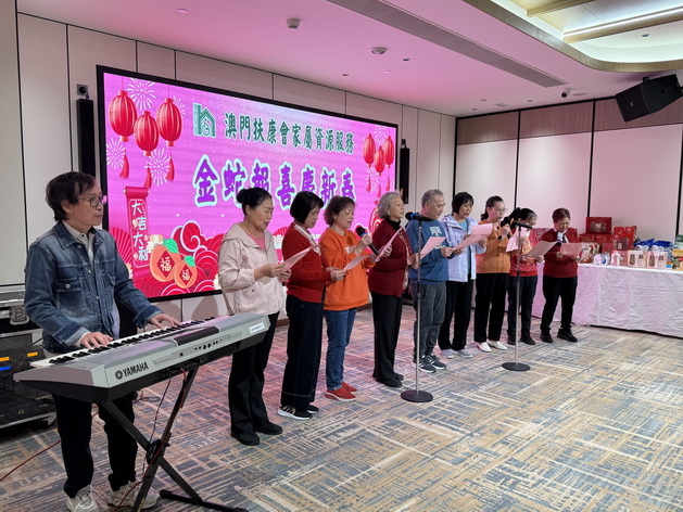 【本報消息】農曆新年是中國傳統的節日,澳門扶康會家屬資源服務藉著新春佳節與照顧者一起相聚及聯歡,讓照顧者感受到溫暖及參與節日的喜悅。「金蛇報喜慶新春」活動於日前舉行,並邀請到會員大會主席飛迪華、理事會主席陳才發、總幹事周惠儀、總辦事處行政經理卓敏儀、澳門中醫藥學會會長石崇榮、花藝導師吳茵娜、排排舞導師吳少英、健身氣功班導師劉志煊、歌唱班導師黃均鎏等出席。嘉賓與照顧者互相團拜及祝福,場面溫馨歡樂。