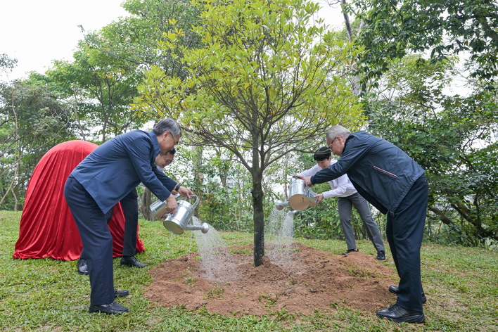 【本報消息】每年3月12日是中國植樹節,行政長官岑浩輝在氹仔小潭山2000環山徑種植中華楠,倡導愛綠、植綠、護綠,冀和本澳居民共同尊重自然、愛護自然,和自然和諧共生。