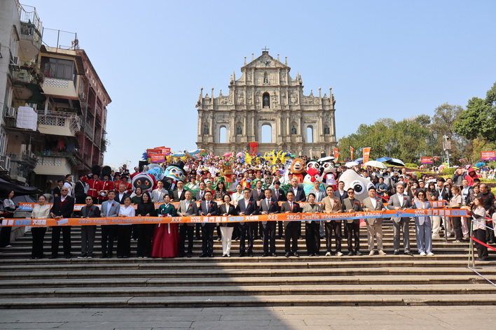 舉辦至第11屆的「2025澳門國際幻彩大巡遊」周日下午在大三巴牌坊舉行起步禮,今年大巡遊有來自葡萄牙、法國、西班牙、意大利、德國、摩洛哥、印度、波斯尼亞和黑塞哥維納、波利尼西亞、阿根廷、埃及,內地及香港地區,並特別邀請同為2025「東亞文化之都」的另外三個城市,即中國湖州市、韓國安城市、日本鎌倉市的藝團共同參與,來自15個國家及地區合共23隊的來澳藝團,連同近60隊本澳團隊,合共近83隊藝團、總參演人數達約1,800人。今年活動並加入本澳特色吉祥物隊,由文化局、旅遊局及六大綜合旅遊休閒企業派出吉祥物及特色演藝團隊與觀眾互動。